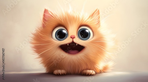 © Berkah, Fototapeta premium Delightful, fluffy orange cartoon cat illustration.