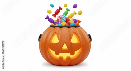 © NaufalBaidawi, Fototapeta premium Delightful Halloween Jack-o'-lantern Filled with Colorful Candies