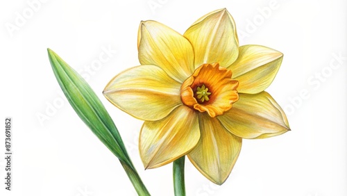 Fototapeta premium Delightful hand-drawn solitary yellow narcissus flower illustration against a clean white background, perfect for various paper craft projects and designs.