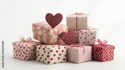 Obraz premium Delightful Stacked Small Gift Boxes with Heart Patterns in Cute Arrangement