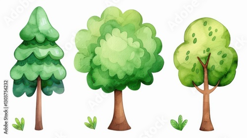Fototapeta premium Delightful watercolor art captures springtime trees, perfect for kids decor and storytelling, with vibrant colors and handdrawn charm.