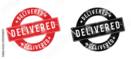 © Rubel, Obraz premium DELIVERED Rubber Stamp Vector. Grunge round rubber stamp sign on transparent background.