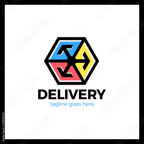Obraz premium Delivery Box Three Arrow Logo. Logistic cube. Transporting hexagon