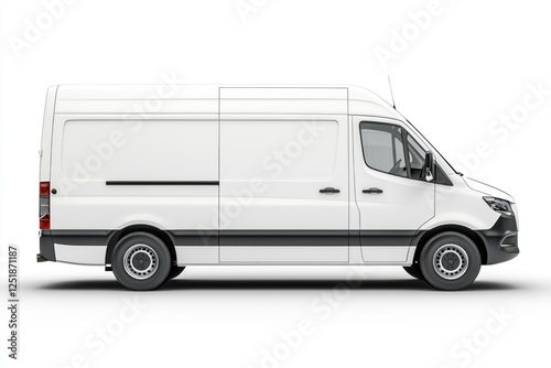 © IES Astro Stock, Naklejka premium Delivery Van blank mockup with copy space and space for logotype isolated on white background. Commercial Vehicle. Cargo Van. Blank Van for design. Delivery Van. Delivery Van.