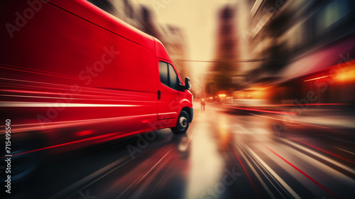 Fototapeta premium Delivery van delivers fast in a city