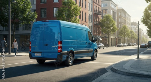 Obraz premium Delivery van in urban setting city traffic scene outdoor daytime modern transport concept