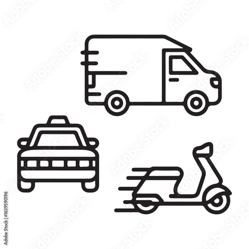 Fototapeta premium Delivery van taxi and scooter icons