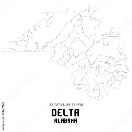 Obraz premium Delta Alabama. US street map with black and white lines.