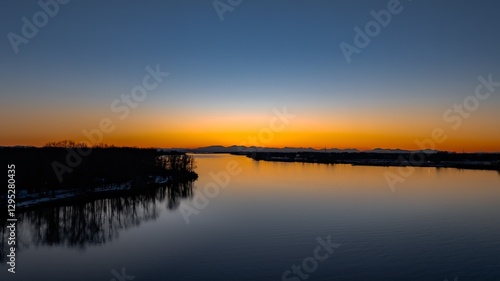 © HokShing, Obraz premium Delta BC Canada - February 11th 2025: Sunset at Deas Island Regional Park waterfront