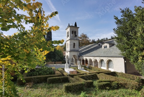 Naklejka premium delvinaki village in ioannina perfecture, autumn season , greece church