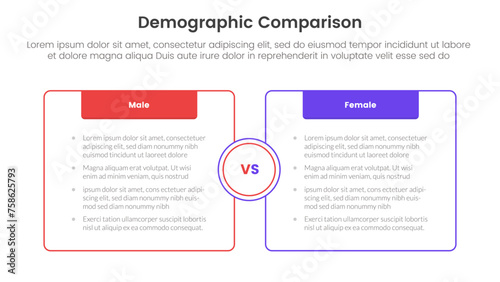 © ribkhan, Fototapeta premium demographic man vs woman comparison concept for infographic template banner with box opposite outline with header with two point list information