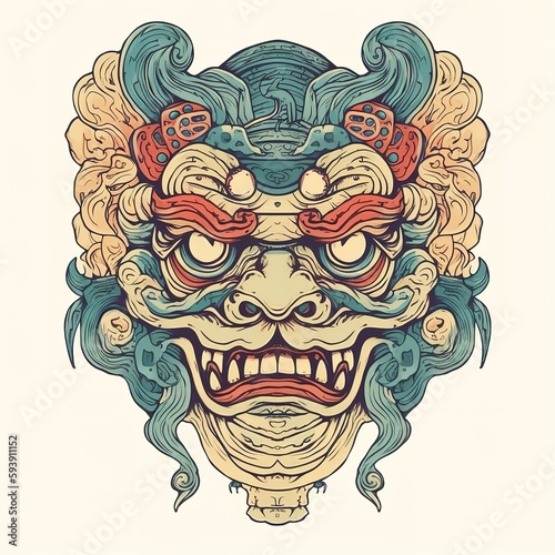 Naklejka premium Demon face character illustration, generative ai