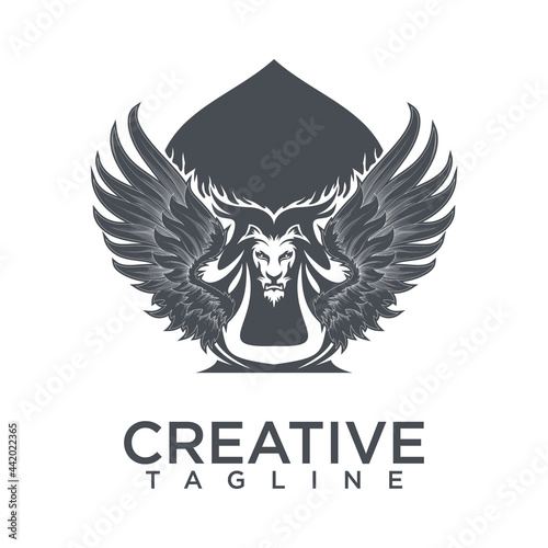 Obraz premium Demon logo with playing card concept design vector