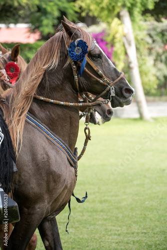 Obraz premium Demonstration of the Peruvian Paso horse mounted by his chalan