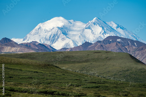 © MelissaMN, Fototapeta premium Denali National Park with the mountain in full view on a blue sky clear summer day.