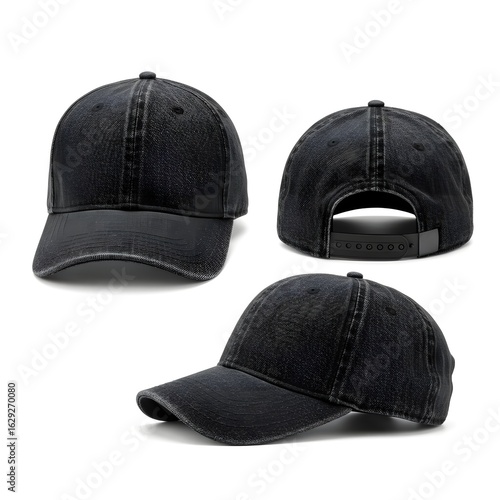 © Ageng Bms, Naklejka premium Denim Baseball Cap Mockup in Three Angles