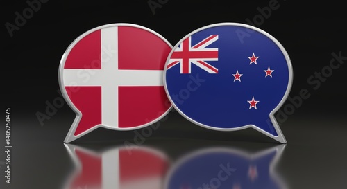Obraz premium Denmark and New Zealand diplomatic dialogues 3D render on glossy surface