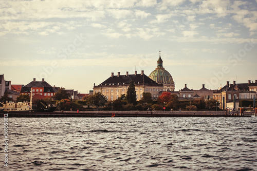Naklejka premium Denmark. Copenhagen. Houses and streets of Copenhagen. City autumn landscape....