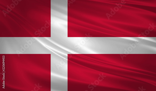 © Evgenia, Fototapeta premium Denmark flag blowing in the wind. Background texture. 3d rendering, wave.