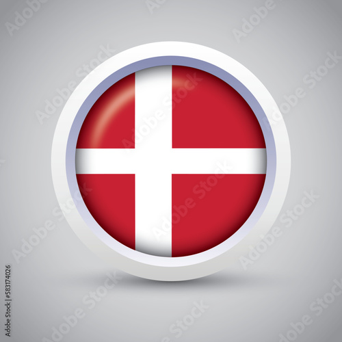 Obraz premium Denmark Flag Glossy Button on Gray Background. Vector Round Flat Icon