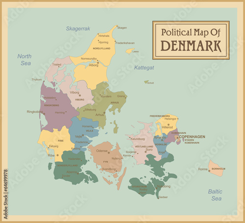 Fototapeta premium Denmark-highly detailed map.Layers used.