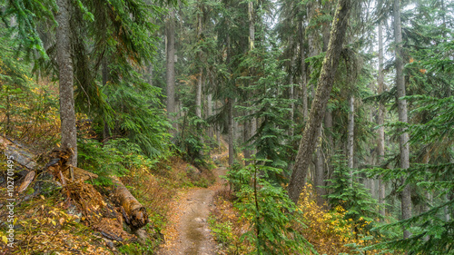 Fototapeta premium Dense autumn forest, BLUE LAKE TRAIL, Washington state