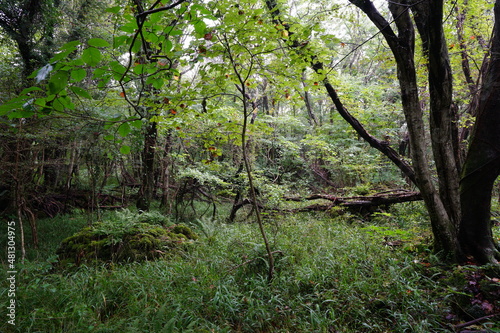 © SooHyun, Obraz premium dense autumn forest with fallen tree