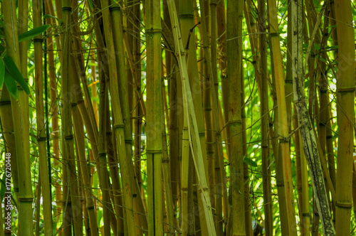 © Michal Plevko, Fototapeta premium Dense Bamboo Forest with Vertical Stalks in Natural Light