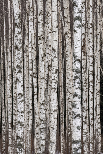 Fototapeta premium Dense Birch Tree Forest with White and Black Bark Patterns