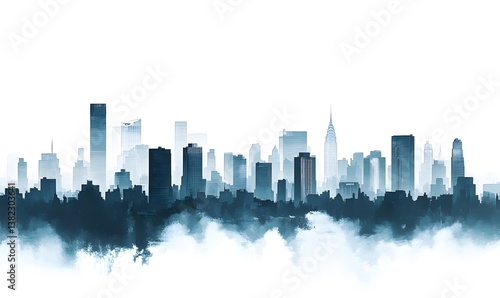 © simba kim, Naklejka premium dense city skyline, Generative AI