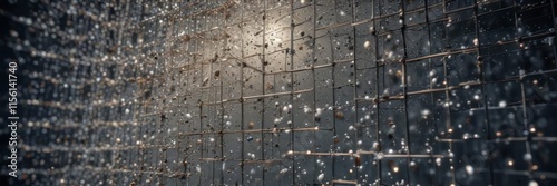 Naklejka premium Dense cluster of tiny particles suspended within a translucent grid-like...