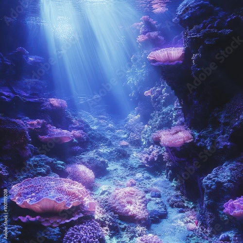 © Chananphat, Fototapeta premium Dense Coral Reef in Tropical Waters with Vibrant Marine Life.