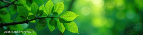 Fototapeta premium Dense foliage of exotic green leaves on a tree branch, foliage, green