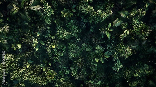 Obraz premium Dense foliage pattern of various tropical plants.