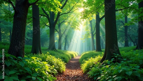 © ทรัพย์ทวี แก้วไพฑูรย, Obraz premium Dense foliage surrounds a tranquil forest glade, trees, calm environment, sunlight filtering