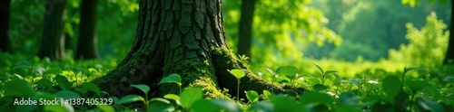Obraz premium Dense foliage surrounds the isolated tree trunk, verdant, nature, wood
