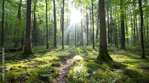 © Kritsada, Fototapeta premium Dense forest absorbing CO2, nature as a carbon sink, netzero emissions naturebased solution