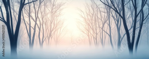 © Photo18@desing, Fototapeta premium Dense forest landscape, fog drifting between branches, 3D illustration
