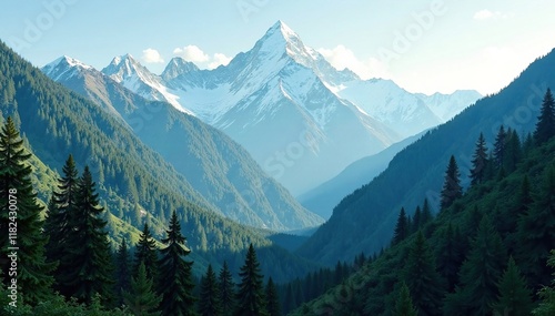 © Withun, Fototapeta premium Dense forest of coniferous trees at high altitude, Himalayas, mountain range