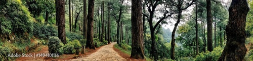 © Rayhan, Naklejka premium Dense Forest Path With Tall Trees