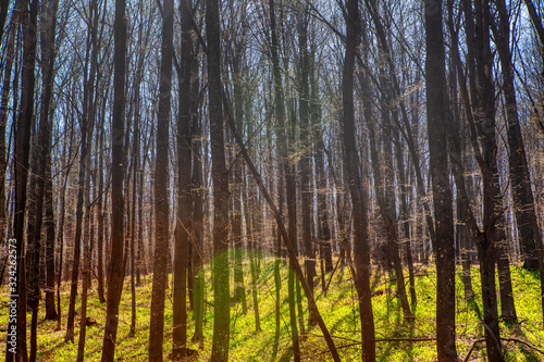 © Leilani, Obraz premium dense forest with bare trees in the spring