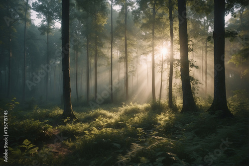 Fototapeta premium Dense Forest With Tall Trees