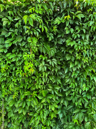 © akridiy, Obraz premium Dense green foliage of climbing plant wall
