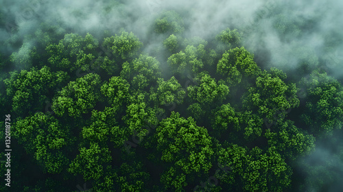 Obraz premium Dense Green Forest Covered In Misty Atmosphere