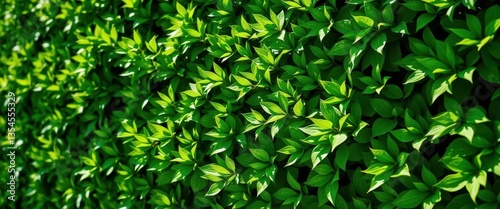 Fototapeta premium Dense green hedge leaves, sunlight dappled texture, green, organic, texture