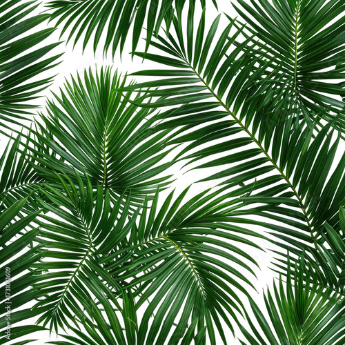 Naklejka premium Dense green palm leaves with detailed texture, forming a natural pattern