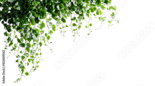 Naklejka premium Dense green trailing vine hanging from top left, thinning into delicate...