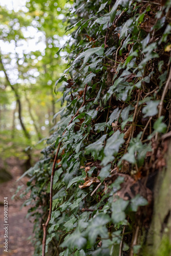 © Karina, Fototapeta premium Dense ivy on an old stone wall