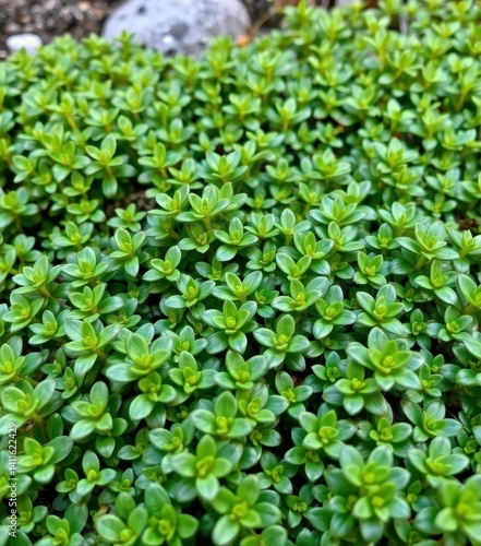 Obraz premium Dense patch of miniature-leaved green plant, thriving outdoors, dense, lush,...