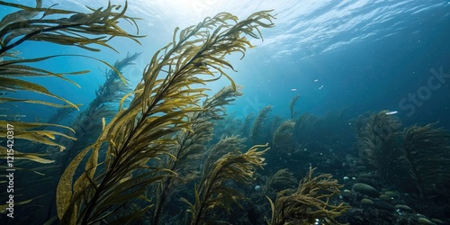 © yuwaree, Fototapeta premium Dense seaweed swaying in dark blue ocean surface, ocean surface, waves, movement, watercolor effect, ocean currents